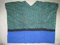This post-1980 huipil was hand-woven on a backstrap loom. The foundation fabric is plain black cotton in the 3 panels. The designs were added during the weaving process using the technique of supplemental-weft brocading, and they are of entirely cotton threads. The huipil consists of three panels, seemed together at the joints. An extra piece of blue commercial cotton cloth has been added along the bottom edge to lengthen the garment where it goes inside the skirt. Also, the side stitching has been tapered for a more natural fit, and vertical seams have been sewn into the garment for the same result. The sides of the garment are closed as used.