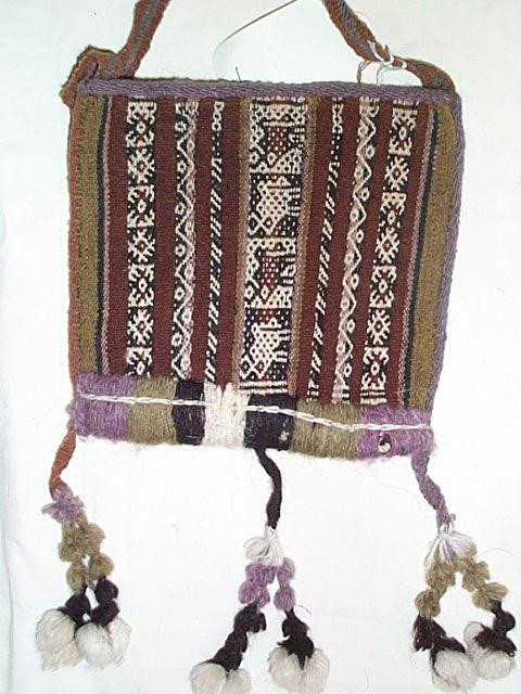 I bought this collection of small Bolivian bags from an Argentinian woman in about 1998. She had made collecting trips into the Andes for years. Region affiliation is uncertain. All are in Very Good condition except as noted; both sides have similar woven designs.