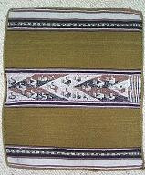 This type of small cloth is variously called tari or inkuna, depending on the use. They are made both for ceremonial and utilitarian function. It is made from handspun wool, hand-woven on an Andean loom in a single panel. The dyes appear to be almost entirely vegetal, though there could also be some synthetic dyes present. I would guess the date to be ca. 2000. There is no tubular edging, but the edges have been rolled over and stitched to emulate a tube.