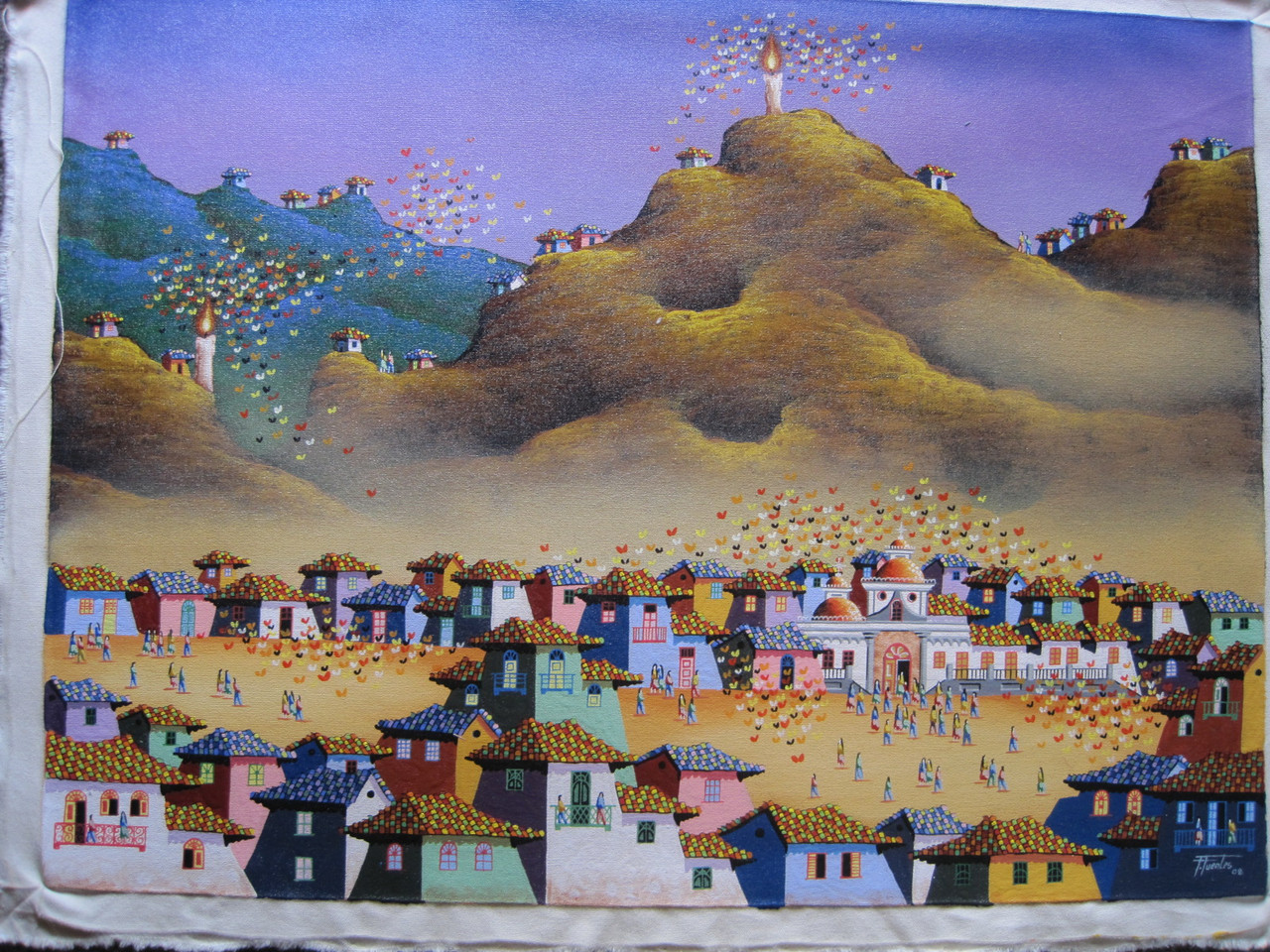 This painting was purchased directly from the artist. It is painted with acrylic on canvas, and is not stretched. Size is 31.5 x 23.5 inches. It is signed lower right "F Fuentes 08", and was painted early in 2008. It will be shipped in a roll inside a hard tube.