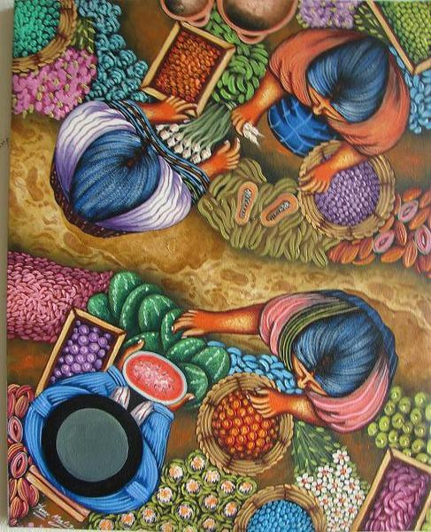 Henry Mendez is a Maya artist who lives in the Lake Atitlan region of southern Guatemala. He sells his paintings through a gellary in Santiago Atitlan. This painting was purchased in February 2010.