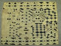 The Kuba people of Zaire weave a wide variety of cloth made from rafia, a natural fiber from palm leaves. The material is stripped into very fine threads, soaked and pounded to make them flexible, and dyed in vegetal or mineral pigments to create a variety of colors. The Kuba employ a variety of weaving and decoration techniques. Cloth of this particular type, employing a single or double panel of plain base material, decorated with embroidery and/or cut pile work, is often called "Kasai velvet", since in the older very fine fabrics the material takes the look of velvet. The edges are often hemmed, though not always, and can be uneven. One source says "These textiles were used as currency, and as ceremonial offerings, in the Kuba Kingdom, which is in what is now the Democratic Republic of the Congo, and was formerly Zaire."